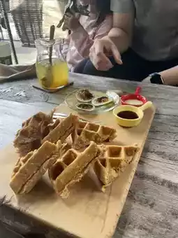 Ajiang's Home specializes in Alishan's own roasted coffee and specialty herbal teas. We ordered iced coffee, kumquat jam tea, and Geisha coffee. Drinks come with a complimentary waffle and lemon slice with coffee powder and brown sugar. We also ordered the famous hunter rice balls. Overall, the food was quite good.