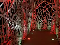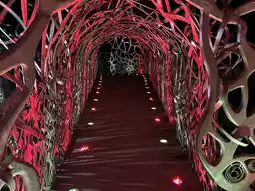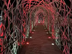 Step into the Tunnel of Light, where intertwining red and gold lights envelop the entire world.