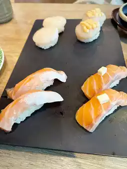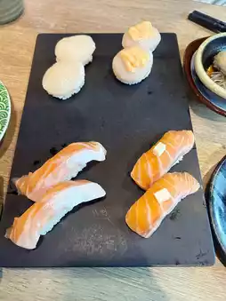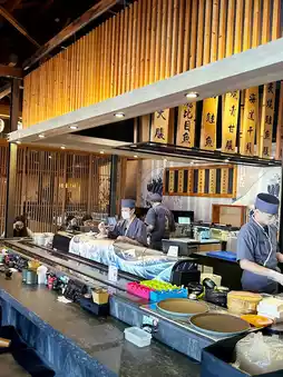 Stepping into 'Samurai Sushi,' you're immediately enveloped by a strong Japanese ambiance—wooden decor, ukiyo-e wall art, and the sight of skilled chefs meticulously crafting sushi. The sushi here isn't just fresh; it has 'soul.'