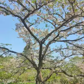 The bright red train shuttles through the mountains and forests, which are in full bloom at this time of year and are a beautiful sight. The sacred tree groups, second-generation trees and third-generation trees demonstrate the vigorous vitality of plants and also record history.