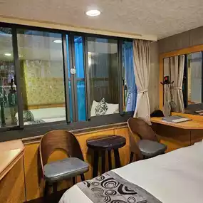 3-star accommodation, not new but not too old. Small building, no elevator. Walk up to find a public water dispenser, hot water, cold water. We stayed 4 people, 2 beds. The room was not too small. The bathroom was spacious, well separated. But there were cockroaches and some winged animals.