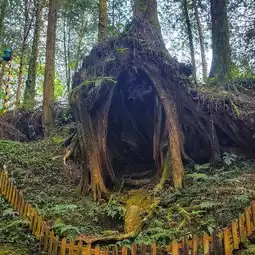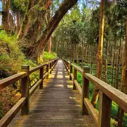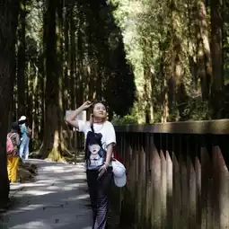 Alishan National Park is a rich forest filled with pine trees, maple trees, and pink cherry blossoms that bloom in spring. It is beautiful and refreshing. The weather here is cool all year round. We walked around the nature, full of trees and strangely shaped roots. There are many interesting points, making walking not tiring at all. I really enjoyed coming here.