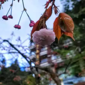 In spring, cherry blossoms are in full bloom, and pink petals cover the entire road, making it the most beautiful photo spot during the cherry blossom season.