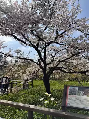 Although some varieties of cherry blossoms in the park have already bloomed and grown green leaves