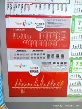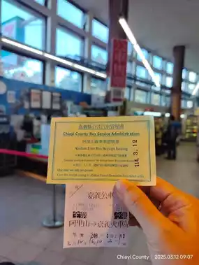 1. Check the bus schedule 7322 that we want to travel to, which will be in front of Chiayi TRA Station. Aunt chose the first round at 06.05 am. The hotel I stayed was opposite the station. I was the first to arrive at 05.30 am. Then, people gradually arrived. I didn't book a ticket through the Family Mart booth. I don't know how to book. If anyone is going to stay, there is a place to store luggage under the bus. Those who book in advance through the booth can board first. Walk-in can board later. Aunt was the 10th person to board. I paid the bus fare with Easy Card 240 NT.