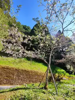 😎After taking the Alishan train out of the Zhuoping Station, you can enjoy the beautiful natural scenery along the Zhuoping Park trails. There are beautiful daisies🌼 and various types of cherry blossoms🌸 (Alishan Somei Yoshino Cherry King🌸 and Wushe Cherry Blossom🌸). The pink petals sway in the wind under the sun. The cherry blossoms🌸 here are in full bloom, making the entire trail full of the breath of spring, and the mood becomes joyful!