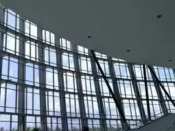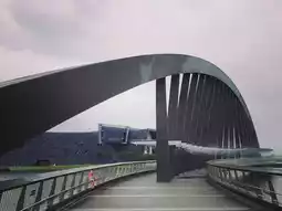 The design is very modern all day long. Looking from a distance, it feels like a small Sydney Opera House, with a long bridge and a slanted and pointed building.