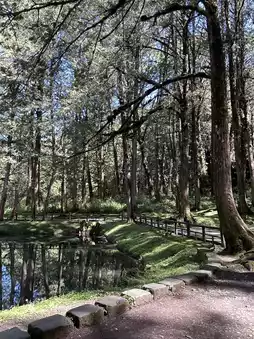 A serene natural landmark located in the Alishan National Scenic Area 🌿. The Sister Ponds consist of two adjacent ponds, Elder Sister Pond and Younger Sister Pond 💧, surrounded by towering cedar trees and offering a cool, pleasant climate year-round 🍃.