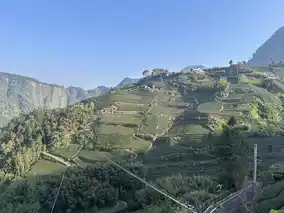 Sitting on a mountain terrace, before me are layers of mountains and a sea of clouds.