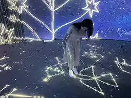 In the interactive exhibition spaces, light flows with your footsteps, making you feel like part of the artwork. As night falls, the reflections of the lake and the architecture outside the museum create a mesmerizing interplay, blurring the lines between reality and dream.