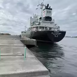 The ship at anchor was the 27th Shinei Maru. We watched the work of throwing the rope down into the port and thought of the countries across the sea. 😌