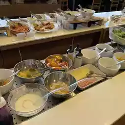 Most restaurants nowadays have salads, the ingredients are fresh and delicious, but the yogurt seems not to be that cold, so it’s a bit stale. Other staple foods include various fried foods, and fish is available in three different flavors. Of course, coffee, juice, and sweat are also indispensable. The onsen eggs, tofu, and even the mentaiko egg salad also made me feel very satisfied. 😋