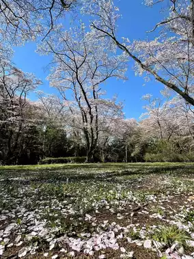 The park features around 1,500 cherry trees, primarily Somei Yoshino, which bloom in late March to early April. During peak season, long walking trails and open lawns become tunnels of soft pink petals. The cherry blossoms are beautifully spread across hills, ponds, and meadows, offering a tranquil setting for picnics and strolls.