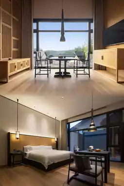 The rooms here are extra special! Garden rooms offer mountain views right outside your window, waking up to birdsong; bamboo loft rooms come with private balconies, perfect for stargazing in the evening breeze—romance level maxed out! The family loft "Listening to Pines" room features tatami designs, ideal for counting stars and storytelling with kids—so heartwarming! Every detail, from the scholar’s tea set to handmade pottery, exudes Zen vibes, making your stay ultra-comfy!