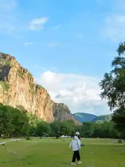 On our journey here, autumn rain pattered softly. The Chicheng Mountains, usually glimpsed from highways, now revealed themselves along national roads winding at their foothills. Clouds draped the slopes like brushstrokes in an ink-wash painting. We pitched our tent beneath poplar trees, with sweeping meadows, rugged cliffs, and meandering mountain streams before us.