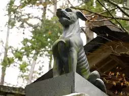Normally, the guardian lions at shrines are dogs (lions), but at Mitsumine Shrine, they worship wolves, which they call "Oinusama (Gokenzoku)."