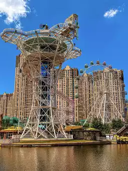 We visited Harbin Wanda Theme Park on a warm summer morning, the kind where the air smelled faintly of sunscreen, popcorn, and possibility. The colors were almost too bright, candy-colored rooftops, spinning rides, and umbrellas scattered like confetti across the walkways. Music played somewhere in the background, mixing with laughter and the rush of water from the flume ride nearby. We followed the crowd toward the fantasy-themed area, not in a hurry, just soaking it in. There was a childlike joy in the air, the kind you don’t question, just follow. 🎢☀️🍧