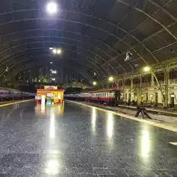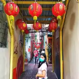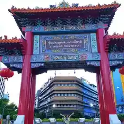 By taking the Eastern Line train from Phaya Thai Station to Hua Lamphong Station. Along the way, you can walk, eat, see, and travel. The royal arch is prominently prominent. The lights of Yaowarat Road, stop by a Chinese grocery store. I must say that the sweet drinks are very delicious (must stop). The alleys are decorated with red lanterns and murals, which are symbols of the Chinese-Thai area.