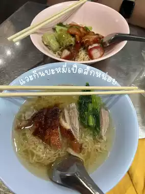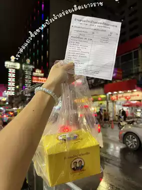 Today we had the opportunity to walk on Yaowarat Road for the first time. There were so many shops and so many foods to choose from. We couldn't decide, so we found a shop selling bread with overflowing fillings, so we lined up to buy some. There were a lot of people waiting in line, but the wait wasn't too long. This shop makes its products quite quickly. The taste was good, the filling was oozing, and the price wasn't expensive. We walked a bit further and stopped to eat duck noodles. It was very delicious. The soup was good and the duck meat was good. If you like walking around looking for food, you shouldn't miss it. I really recommend it. Plus, the price is moderate. I recommend going in the evening so you can take pictures with the lights of the Yaowarat signs. The lights are beautiful and colorful. It's complete. #Nightlife #100TravelTips
