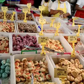 Let me tell you that there are a lot of shops. There are many delicious vegetarian dishes, both savory and sweet, all in one place. Walking around, you will have your hands full of food. Anyone who is observing the vegetarian precepts, don't miss out on going to find delicious food to eat... 😊