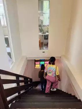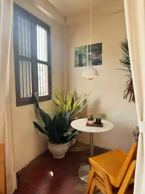 Vahap Coffee Yaowarat☕️🍵 A hidden shop on the 3rd floor of an old building in Yaowarat area. It is a secret coffee shop with a very mysterious entrance. The entrance is a small door. You have to look carefully because you will miss it. Most importantly, the stairs are very steep. You have to walk carefully. It took us a long time to reach the shop on the 3rd floor. But when you walk up the stairs, you will see a magnificent view. We like that the shop is decorated with glass all around. You can see Wat Sampanthawong. The light comes in and it is even more beautiful. It is a shop with very beautiful light. Every corner is beautiful to take pictures. We like the space design that combines modern and classic perfectly.
