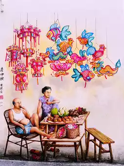 #favouriteitinerary Street mural/paintings in Chinatown, Singapore, vividly capture the essence of the neighborhood’s rich cultural heritage, blending traditional elements with vibrant modern life. The artwork often features scenes reminiscent of old Chinatown, where traditional Chinese music, played on instruments like the erhu or guqin, fills the air. These paintings bring to life the sounds of the past, with visual depictions of street performers and musicians playing lively tunes that evoke nostalgia for a bygone era.