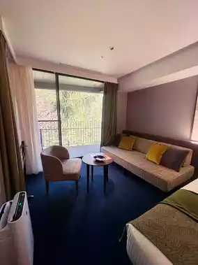 The room is located right by a river, so you can constantly hear the soothing sound of the stream, creating a truly relaxing atmosphere.☺️