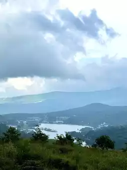 An observation deck overlooking Mt. Tateshina and Lake Shirakaba.