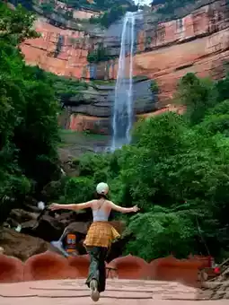 1. Core viewing platform: Directly opposite the waterfall, it is the best location for panoramic shots, where you can capture the full view of the waterfall and the Danxia rock wall.