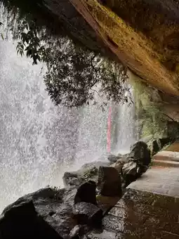 The rock wall constantly seeps water forming a natural bead curtain💦
