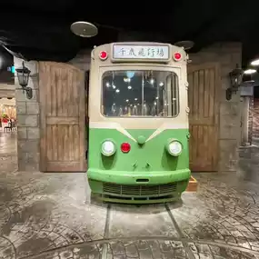 This area was created with an old-fashioned atmosphere, with old-fashioned cobblestones and decorations. There is also a replica of a streetcar, giving it a Showa-era retro feel.