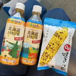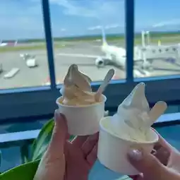 Unfortunately, the flight we were supposed to take was delayed by 3 hours, so we ate soft serve ice cream (milk and melon flavor) and sweets at the gate while waiting for the flight! This Hokkaido Toukibi Tea is delicious, so please try it from the vending machine ✨