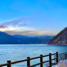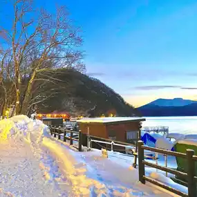 Lake Shikotsu is one of several caldera lakes in Hokkaido. It is actually the northernmost lake in Japan that never freezes, and when I visited, it was below freezing outside, but it wasn't frozen. It is also known for its excellent transparency. The scenery was covered in pure white snow.