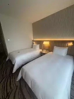 I'm staying at the ANA Crowne Plaza in Chitose, and it's so calm and comfortable that you wouldn't believe it's so close to the airport! The room was clean and spacious, and the interior had a warm wooden feel that made it relaxing.