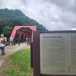 Then, boom! I look up and spot this gigantic red bridge towering over me. Instantly got all the Christmas feels, like I just stumbled onto a massive holiday present in the middle of nature. The structure's bold vibes and that bright color? Seriously, itโs a whole mood ๐โจ.