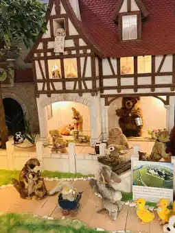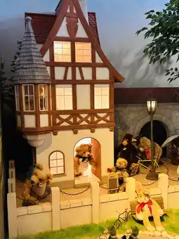 Teddy bears had created a little village. On the castle walls, a soldier bear held a flag, under a tree, a bear was tending a campfire, and inside a cabin, a baby bear was peeking out the window. Each one had such lifelike expressions, as if someone had carefully imbued them with individual stories.