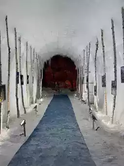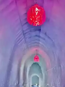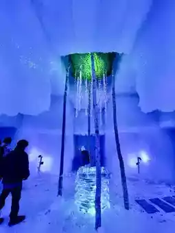 A fantastical world unfolds before you, with the impressive 13-meter-tall Blue Tower, an observation deck from which you can see the whole view from a 7-meter-tall tower, and a tunnel with sparkling ice chandeliers.