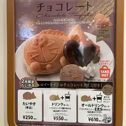 This time I tried their new bream, with red bean and cheese flavors, plus a cup of chocolate or strawberry milkshake, are 610Yen, very cute and great for taking pictures🤩