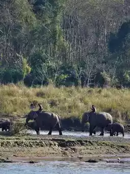 🦏Chitwan National Park is a national park in Nepal, located 150 km southwest of Kathmandu. It is famous for its Indian rhinoceroses. The Indian rhinoceros is one of the world's most endangered animals and is extremely rare. The Bengal tiger is also a key protected animal in the park. You can also visit the snow-capped Himalayas here. The Rapti River, formed by seven rivers flowing down from the Himalayas, meanders through the park, and visitors can take a boat to see crocodiles.