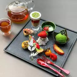 This luxurious plate featured a total of eight sweets and savories, including matcha green tea and seasonal strawberries.