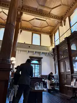 I visited Café 1894 on a weekday afternoon, and even then, it was quite popular—had to wait around 20 minutes to be seated. But honestly, it was totally worth it! The café is housed within the beautiful Mitsubishi Ichigokan Museum, and you can really feel that classy, artistic vibe when you step inside. The high ceilings and warm wooden interiors create such a calm and inviting atmosphere—perfect for a little break. I ordered the shrimp tomato cream pasta, which was both flavorful and satisfying.