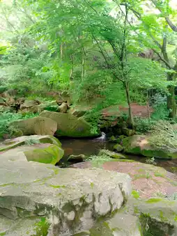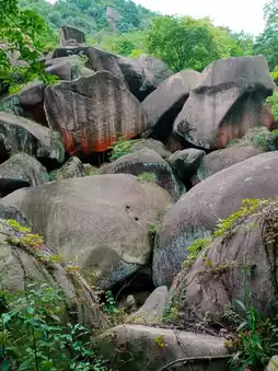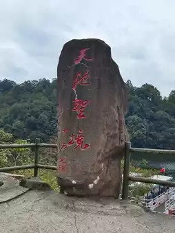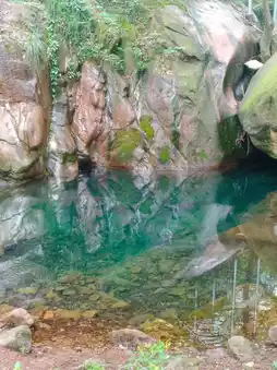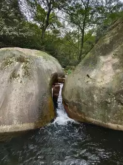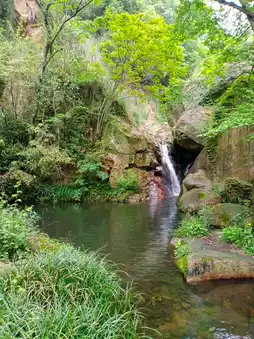 The Tianchi in the scenic area is a small natural lake, with Tianhe upstream, and the scenery is very beautiful. In order to irrigate agriculture during the Great Leap Forward in 1958, two reservoirs were built. There is a stone valley about 2 kilometers long between Tianchi and Longchi. The stone valley is stacked with a large amount of glacial drift, with unique caves, connected caves, and clear spring water. The ecological vegetation in the stone valley is well preserved, and strange ancient trees, vines, and moss grow on the rocks; the woods on both sides of the stone valley are lush, with hundreds of birds singing; the deep woods, fresh air, static boulders, and dynamic waterfalls flow down, forming the wonder of 'Tianhe Hanging Green Water', which is known as the best in the south of the Yangtze River.