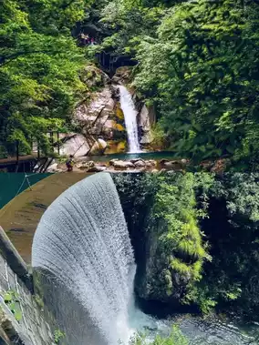 With its original natural ecology and unique landscape, the deep forests, fresh air, static giant rocks, and dynamic waterfalls create the wonder of "Heavenly River Hanging Green Water," a unique sight in Jiangnan.