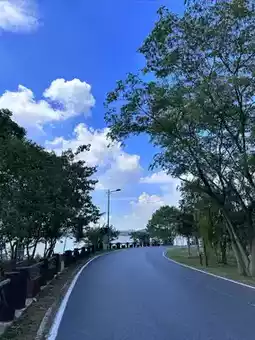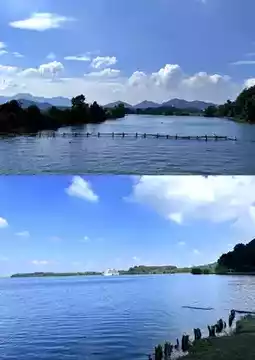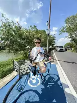 The first dike is the Pingtian Lake Sky Road recommended by Ms. Hua. It is very close to the hotel. We rented shared bicycles near the hotel. This time, we brought a shared bicycle child seat. It wasn't particularly hot during our visit. Cycling on the Sky Road, with a gentle breeze, the sky and water as one, and the mountains in the distance, we could truly appreciate Li Bai's words, "Water like a single practice, this place is Pingtian". The breathtaking scenery completely relaxed our minds and bodies. It's worth mentioning that there were few people, even during the Mid-Autumn Festival holiday.