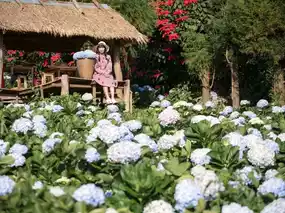 Entering winter, the high season of the tourist season. For those who love taking pictures with flower fields, we recommend the "Hydrangea Field" at the Royal Project Khun Pae, Chiang Mai Province, which is in full bloom from November to February. The blue flowers contrast with the green leaves and the refreshing atmosphere, still maintaining the naturalness of Ban Khun Pae. In addition to the flower fields, there is also a viewpoint for rice terraces (recommended to come during the rainy season), a viewpoint for the sea of mist, and a cabbage farm at Doi Blae Jo. If you have the chance to visit, we recommend you to stay here for a night. There are many inexpensive homestays with delicious food.
