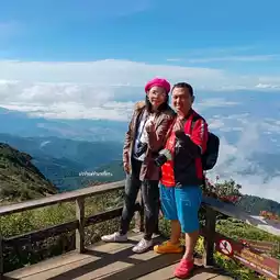 "Kiw Mae Pan" or "Kiw Mae Pan Nature Trail" is a popular tourist attraction on the top of Doi Inthanon. It is approximately 2,400 meters above sea level. The trail is a circle with a total distance of 3.2 kilometers. It takes about 2-3 hours to walk. The time depends on each person's physical readiness. 🚶
