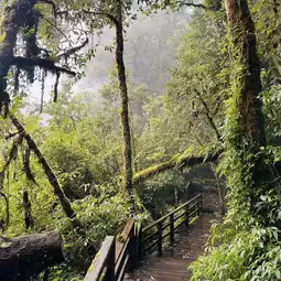 Doi Inthanon National Park, home to Thailand’s highest peak, is a paradise for nature lovers and adventurers alike. Located in the Chiang Mai Province, the park is characterized by its cool climate, lush greenery, and stunning waterfalls. The summit, standing at 2,565 meters above sea level, offers breathtaking panoramic views of the surrounding mountains and valleys. The park is also home to the beautiful twin Royal Pagodas, built to honor the King and Queen, which are surrounded by immaculate gardens. Bird watchers will find Doi Inthanon a haven, as it hosts over 300 species of birds. Hiking trails of varying difficulty take visitors through cloud forests, past waterfalls, and along scenic ridges, making it a perfect destination for those looking to explore Thailand’s diverse natural beauty.