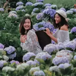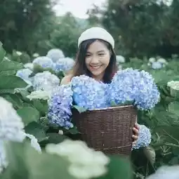 I came to Chiang Mai to see the hydrangeas at the largest hydrangea field in Thailand. When I saw them blooming in the field, I ran over and hugged them without thinking. This is what it feels like to run around in a flower garden.