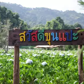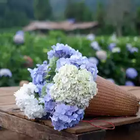 #Get a discount without relying on luck. Taking pictures anywhere is very beautiful. There are only 3-4 months a year. The atmosphere is very good. The hydrangeas are very large and come in many colors. We drove to park at the villagers' place and rented a car to ride on. On the way, we also got to see the rice terraces. But now, there should only be the villagers' gardens. There are also things for sale in the community. There are some roads on the mountain that are difficult to drive. There are many curves. You have to drive slowly. But when you get there, the hydrangeas are really beautiful. #Chiang Mai travel #Chiang Mai flower garden #Hydrangea field, Ban Khun Pae #Khun Pae Royal Project