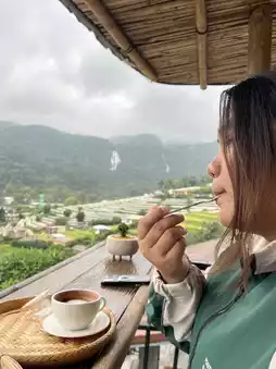 Int Lai Khao Cafe is located on Doi Inthanon, a very popular tourist destination in Chiang Mai. To get to the cafe, you need to use a car or motorcycle, as the route is winding and uphill, so caution is advised while driving.